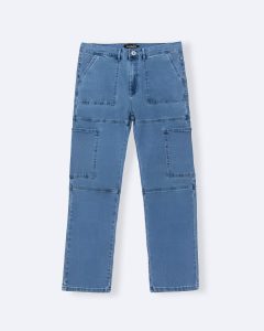 Presentamos el Pantalón Cargo Laser, confeccionado en denim de alta gama. Su diseño cuenta con 6 bolsillos, 2 en la parte frontal, 2 laterales y 2 traseros. con accesorios y cremalleras metálicas, que realzan su lujo y funcionalidad.