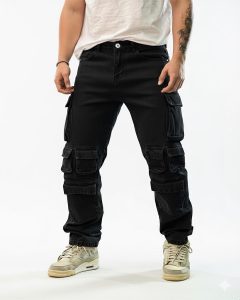 Presentamos el Pantalón Cargo Magnus, confeccionado en denim de alta gama. Su diseño cuenta con diez bolsillos con accesorios y cremalleras metálicas, que realzan su lujo y funcionalidad.