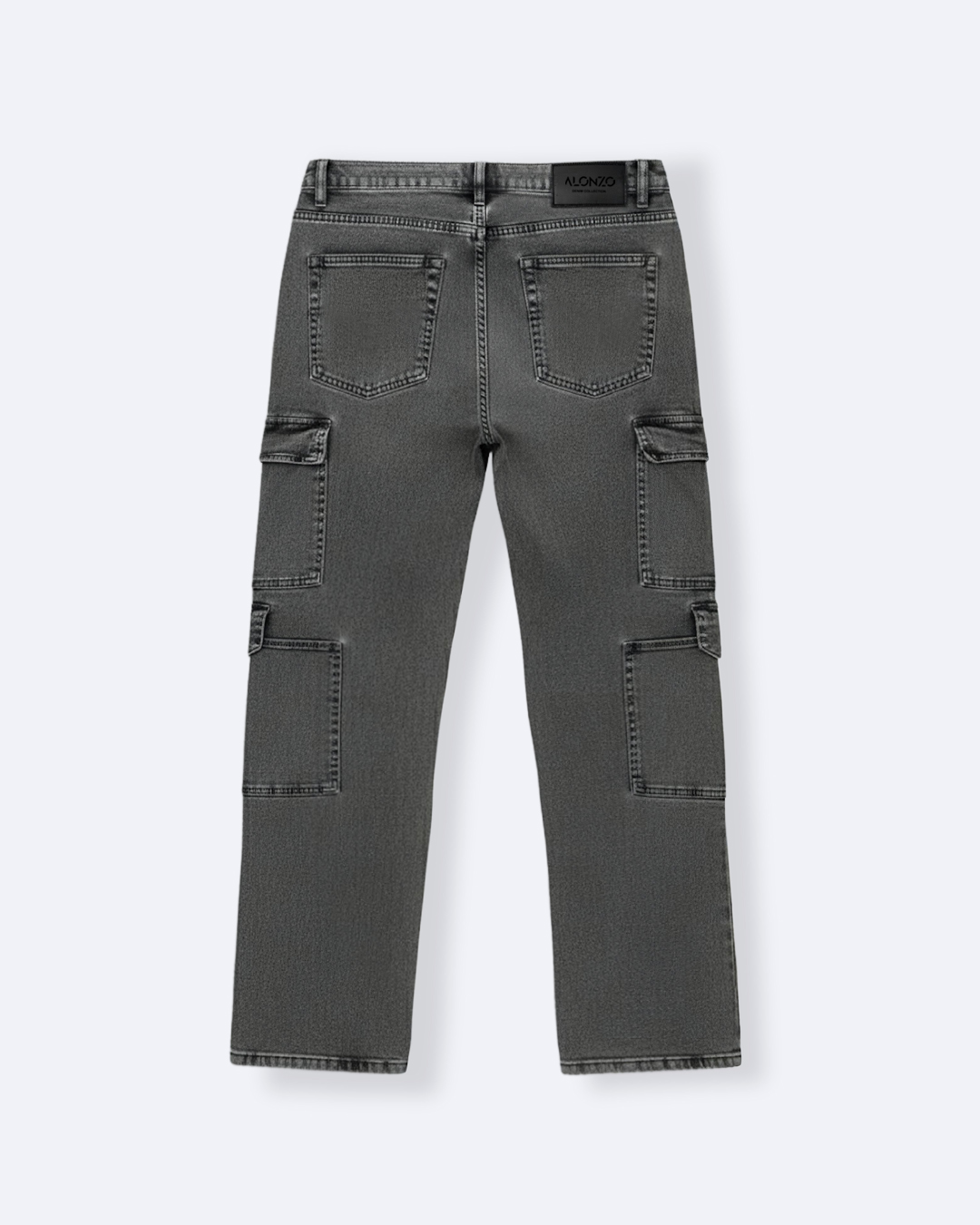 Presentamos el Pantalón Cargo Nevado, confeccionado en denim de alta gama. Su diseño cuenta con 8 bolsillos 6 en la parte frontal y 2 traseros, accesorios y cremalleras metálicas, que realzan su lujo y funcionalidad.
