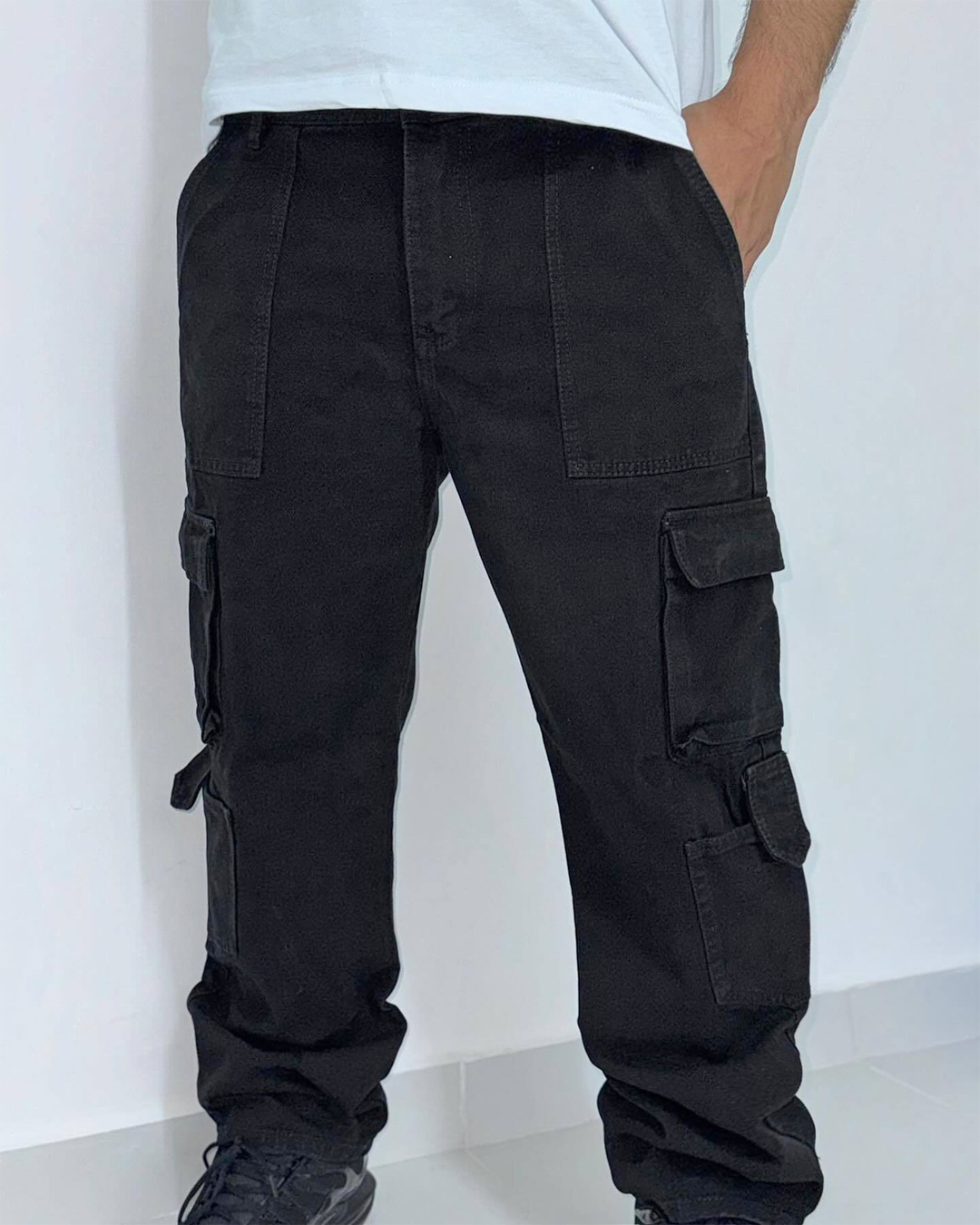 Presentamos el Pantalón Cargo Nevado, confeccionado en denim de alta gama. Su diseño cuenta con 8 bolsillos 6 en la parte frontal y 2 traseros, accesorios y cremalleras metálicas, que realzan su lujo y funcionalidad.