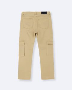Presentamos el Pantalón Cargo Nexus, un pantalón cargo confeccionado en denim. con bolsillos laterales y bolsillos traseros en triple costura, accesorios y cremallera metálica A/I.