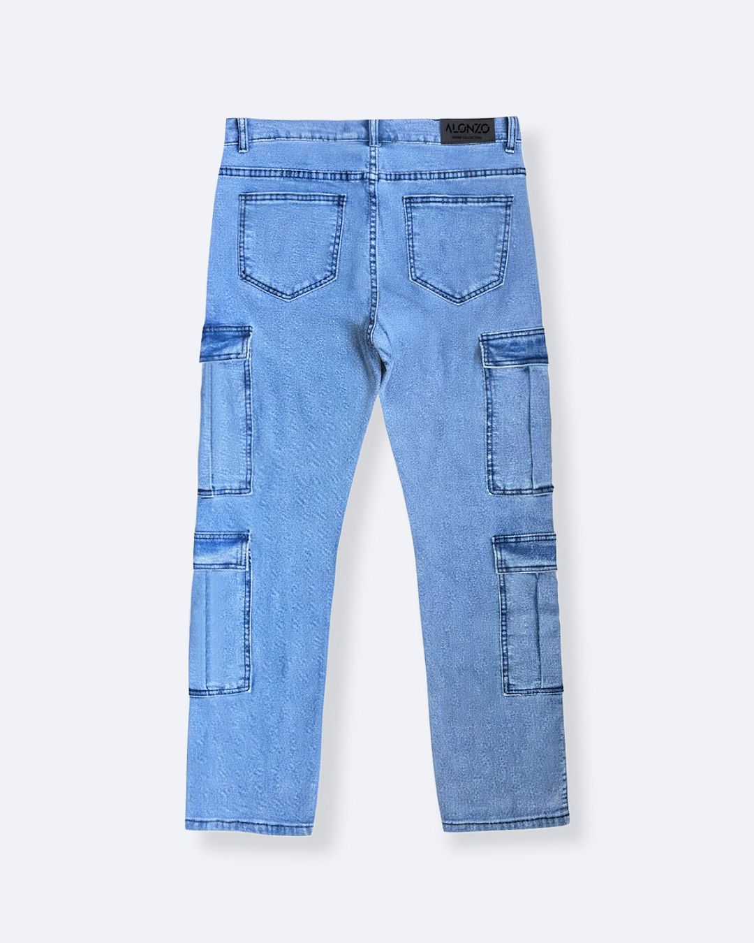 Presentamos el Pantalón Cargo Season, un pantalón cargo confeccionado en denim. con bolsillos laterales y bolsillos traseros en triple costura.