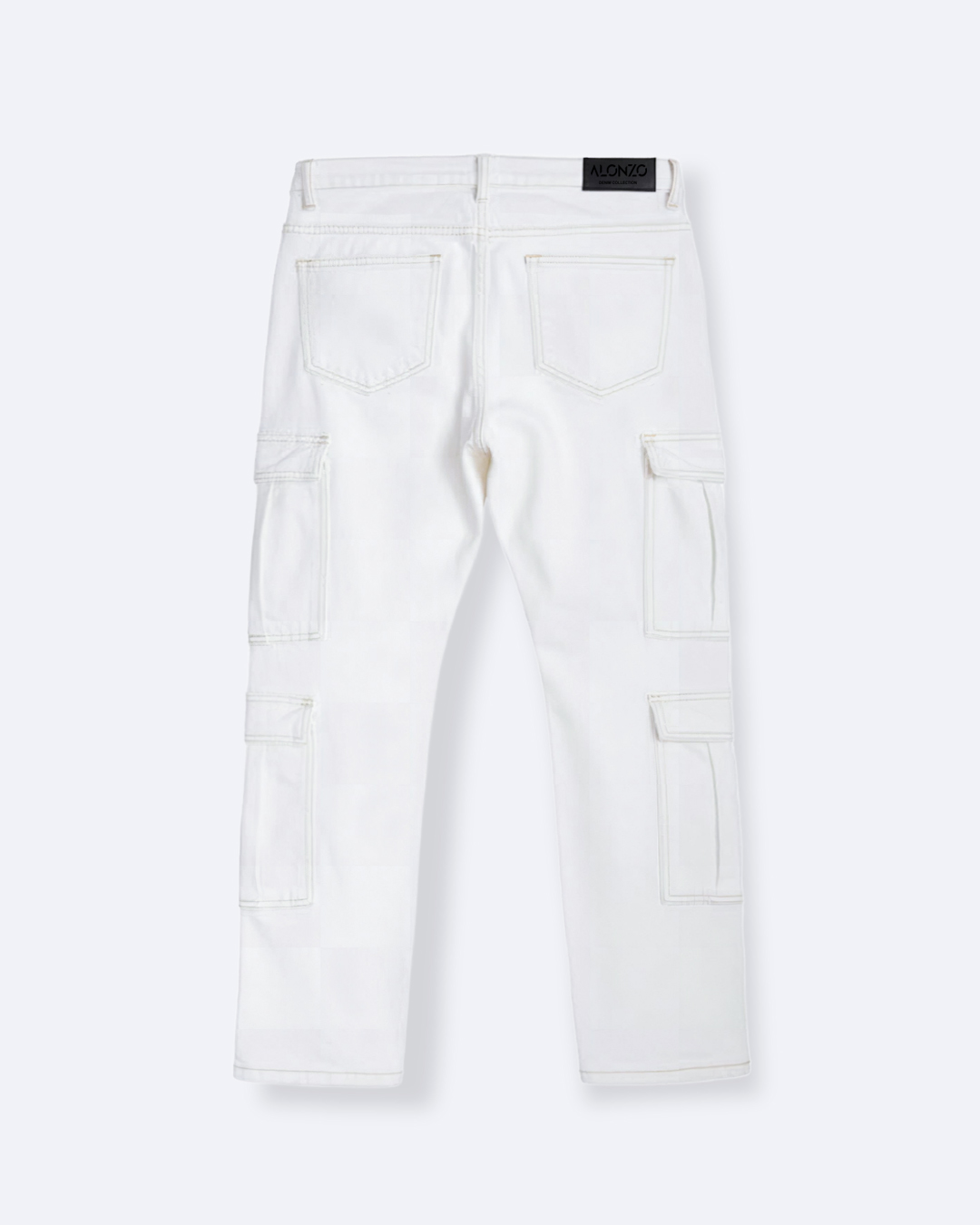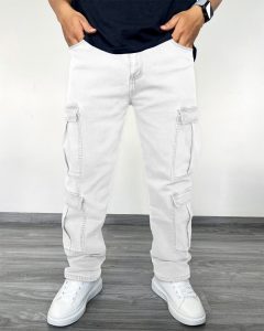 Presentamos el Pantalón Cargo Season, un pantalón cargo confeccionado en denim. con bolsillos laterales y bolsillos traseros en triple costura.